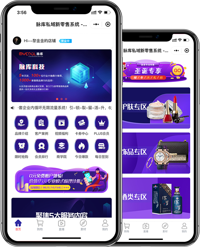 3大商业模式融合 代理+商城+直播,3大商业模式完美融合!品牌帮助代理开通商城店铺,启动各种营销活动!通过各种推荐分佣机制,实现C端快速裂变!