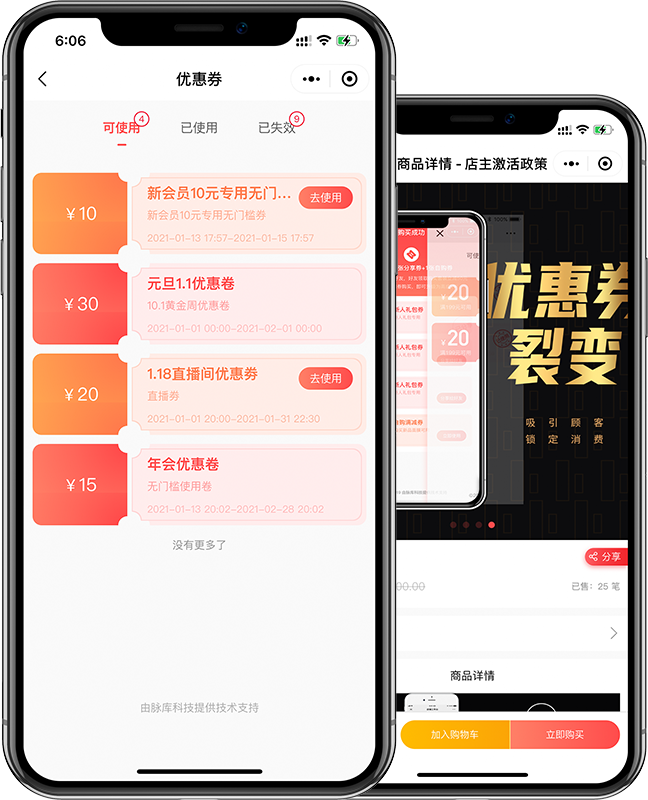 会员商城营销 会员商城营销活动矩阵体系: 商城店主激活活动、积分商城 活动、内购福利活动、优惠券 活动、限时秒杀活动、会员礼 包拓客活动、拼团活动、推广码数据绑定 等营销活动插件叠加使用!