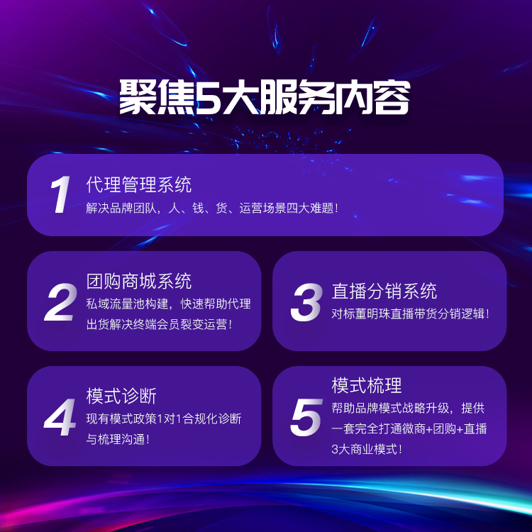 02 提供解决方案 擅长解决品牌方团队管理、流量裂变、直播分销问题,系统化运营方案提供!