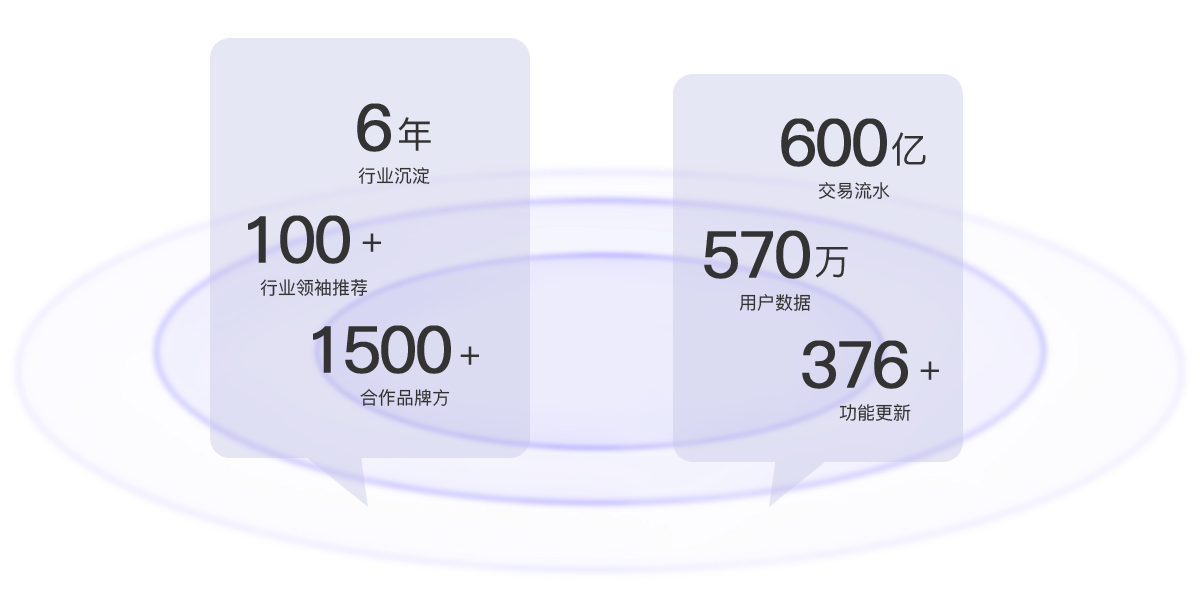 06 免费试用 0元免费试用、600亿+交易流水、570万+代理用户数据、1500+合作品牌方、376+功能更新、7*12服务在线。